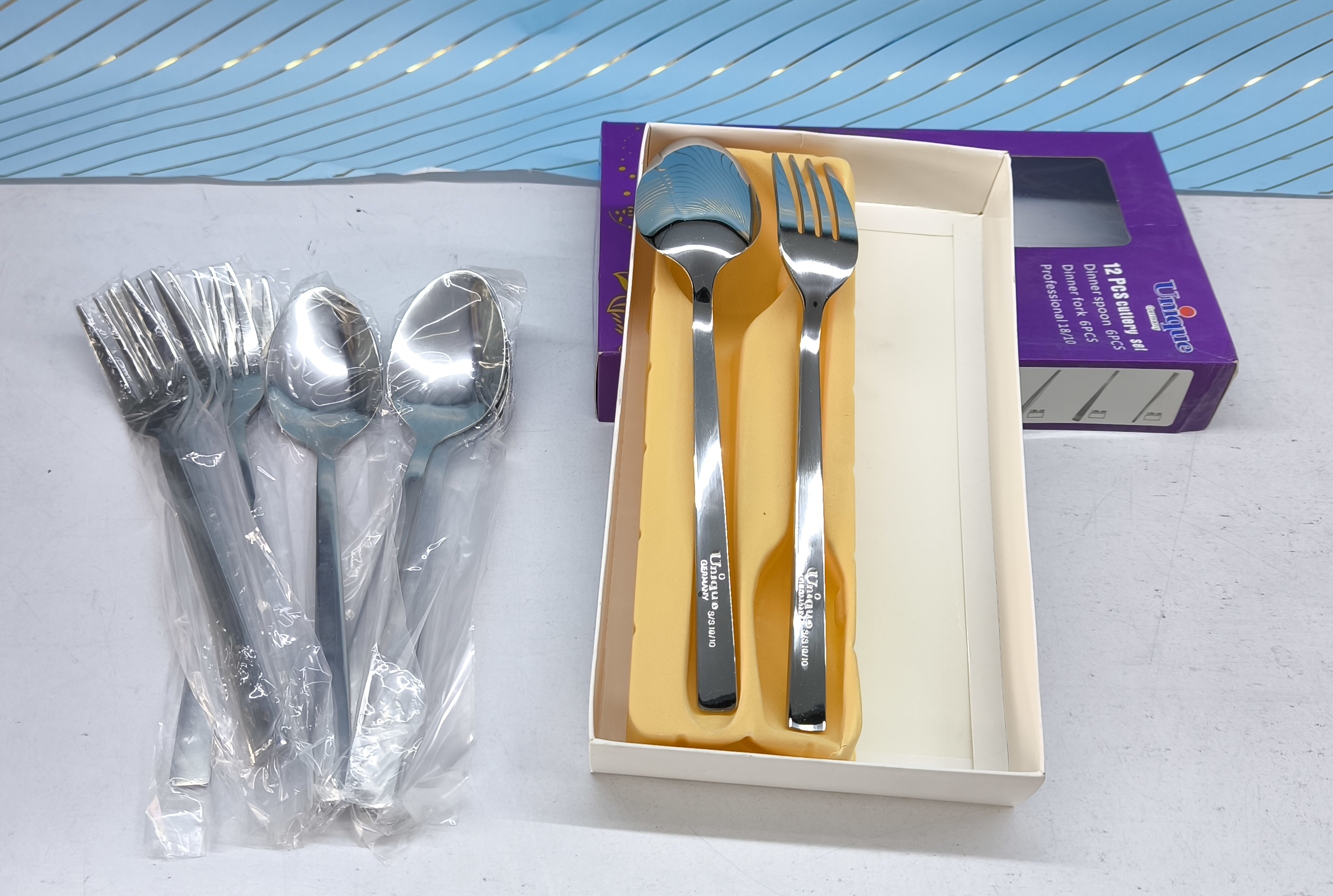 🔍 درج برجسته عبارت UNIQE / یونیک در پشت قاشق و چنگال که نشانه اصالت کالا و کیفیت بالای ساختشه؛ چیزی که هم موقع خرید خیالت رو راحت میکنه، هم بعد از استفاده حس خوب یک انتخاب درست رو میده 💎