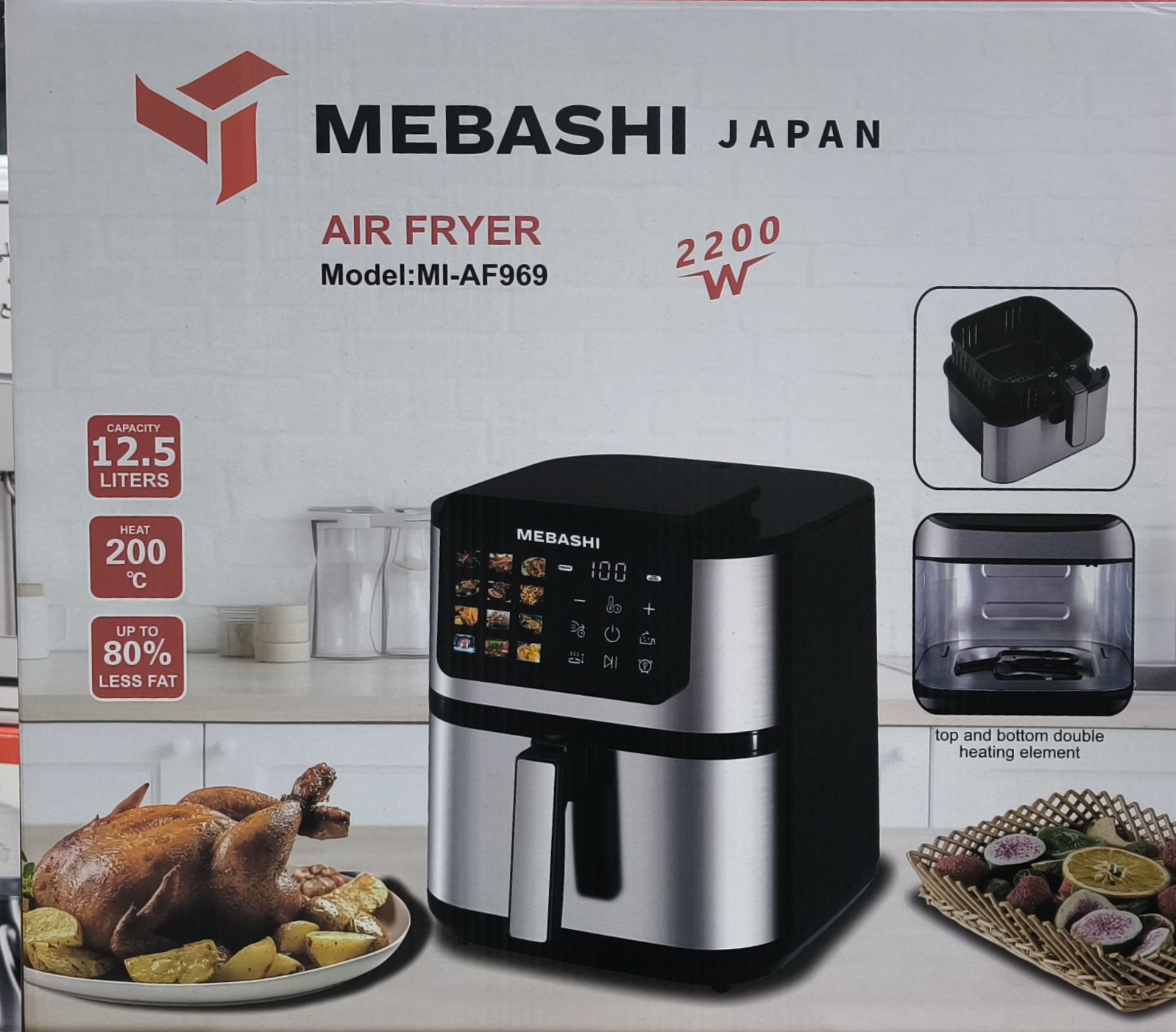 اگر بهدنبال یک سرخکن بدون روغن حرفهای، پرقدرت و جادار هستید که هم برای خانواده و هم مهمانیها جوابگو باشد، Mebashi MI-AF969 دقیقاً همان انتخابی است که انتظارات شما را برآورده میکند. این دستگاه با توان فوقالعاده 2200 وات و ظرفیت بزرگ 12.5 لیتری، امکان پخت سریع، یکنواخت و سالم انواع غذاها را با کمترین میزان روغن فراهم میسازد. 🍗🥩🥔