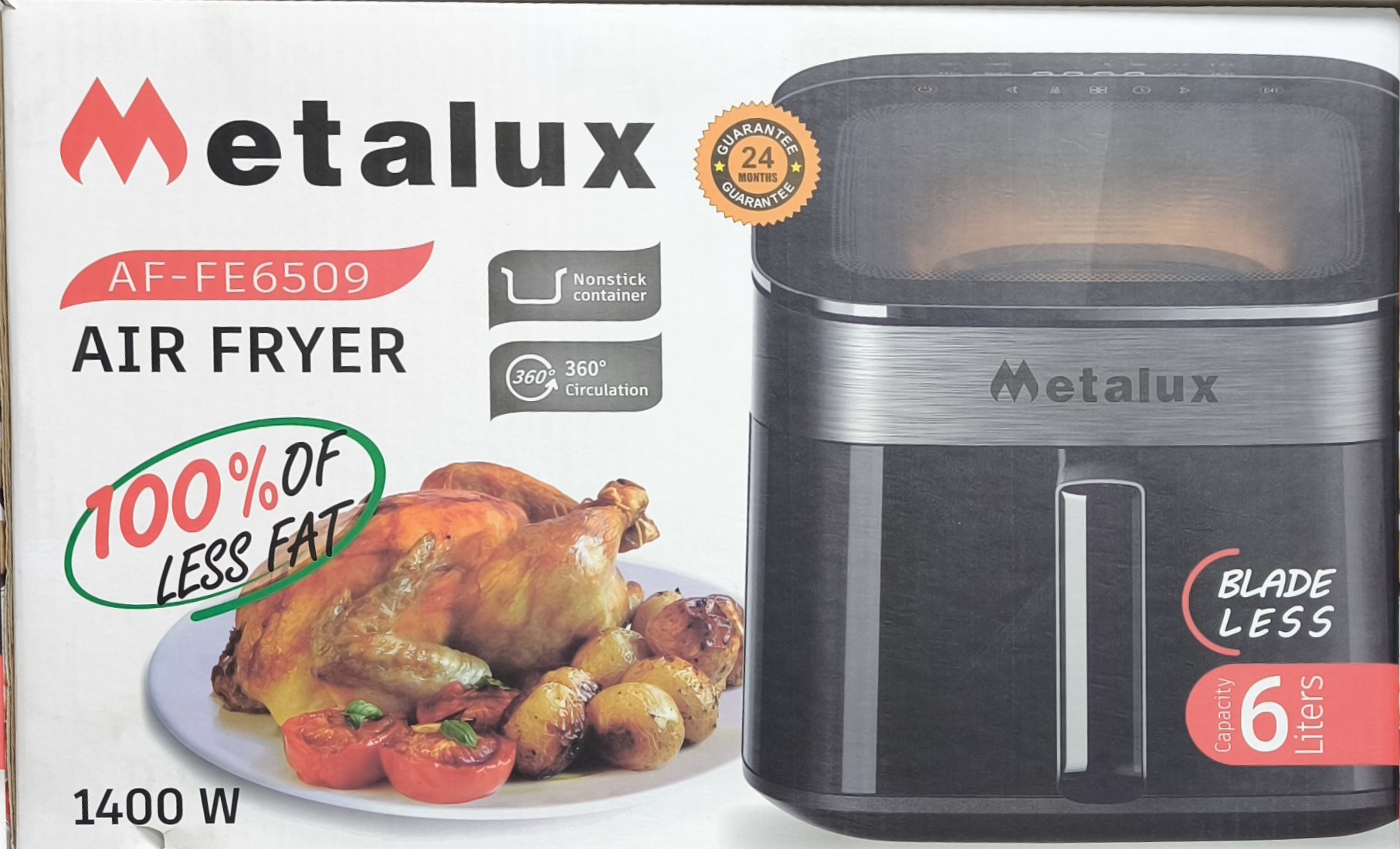 اگر بهدنبال ترکیبی از قدرت، ظرفیت بالا، طراحی خاص و امکانات کامل هستید، سرخکن بدون روغن متالوکس مدل AF-6509 انتخابی مطمئن و ارزشمند برای خانه شماست.