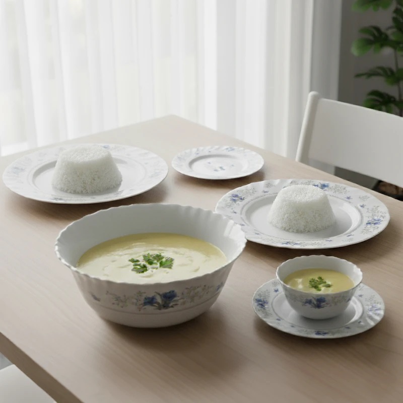 سرویس ۶ نفره پارس اپال مدل ۱۲۰ رمانتیک یکی از پرفروشترین و محبوبترین طرحهای برند پارس اپال است. طراحی لطیف و رمانتیک آن، درخشش خاص اپال و مقاومت بسیار بالا در برابر ضربه و حرارت باعث شده این سرویس هم برای استفاده روزمره عالی باشد و هم برای مهمانیها جلوهای شیک و چشمگیر ایجاد کند.